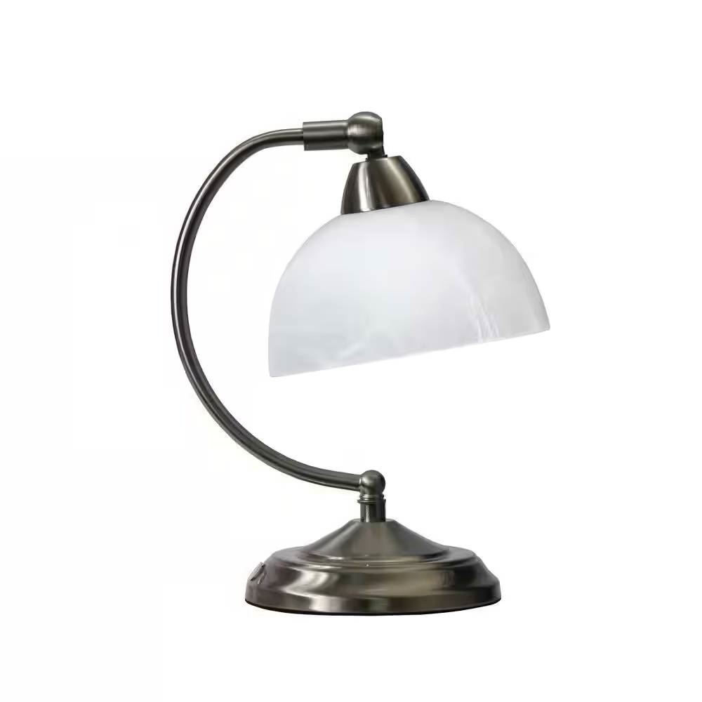 This Small Bankers Lamp Desk Light Table Lamp with Marbleized White Glass Shade features a curved arm and touch control dimmer base with an exquisite finish. The marble glass shade finishes the look. A charming, inexpensive, and practical desk lamp to meet your fashion lighting needs. Perfect lamp to complement your office décor.
