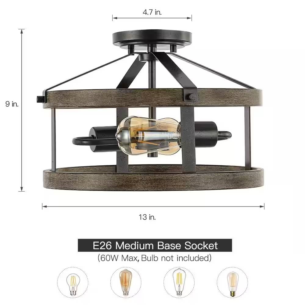 • E26 medium base socket, (1) 40-Watt MAX, Vintage LED Edison bulb suggested(bulb not included) to enhance the vintage look