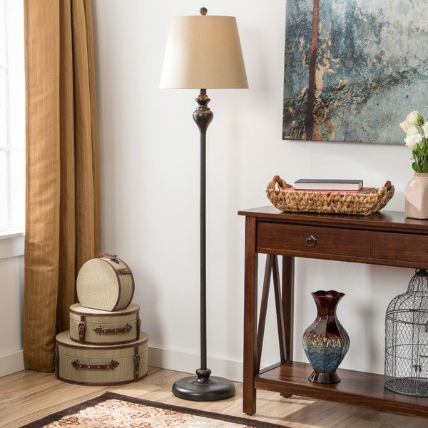 Cast a warm glow over your entire living room with this 3-Piece Floor Lamp and Table Desk Lamp Set in Black with Light Gold Drum Shades. Light gold drum shades and a black finish will add a tasteful polish to existing décor. Twin table lamps and a matching floor lamp make lighting any room easy as one, two, three.