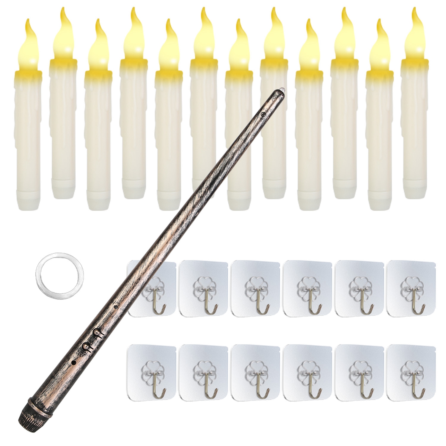 12Pcs Flameless Floating Candles LED Magic Hanging Candle Light Battery Operated Flickering Warm Light Window Candle With Magic Wand Remote for Hallow