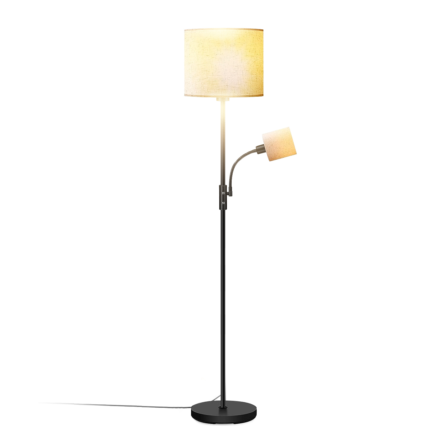 Our floor lamp comes with 2 heads, one as main illumination lamp, another as reading light, which is not only a multifunction lamp, but also a stylish decoration and ideal new home gift. Adopt E26 bulbs, this standing lamp with linen shade emits 3200K warm yellow light, glowing up soft, eye-protection and gentle brightness. Weighted metal base performs great durability and stability, safe for children and pets in daily life. Easy operation and installation are convenient and considerate, a perfect floor lamp for living room, bedroom, office and so on.