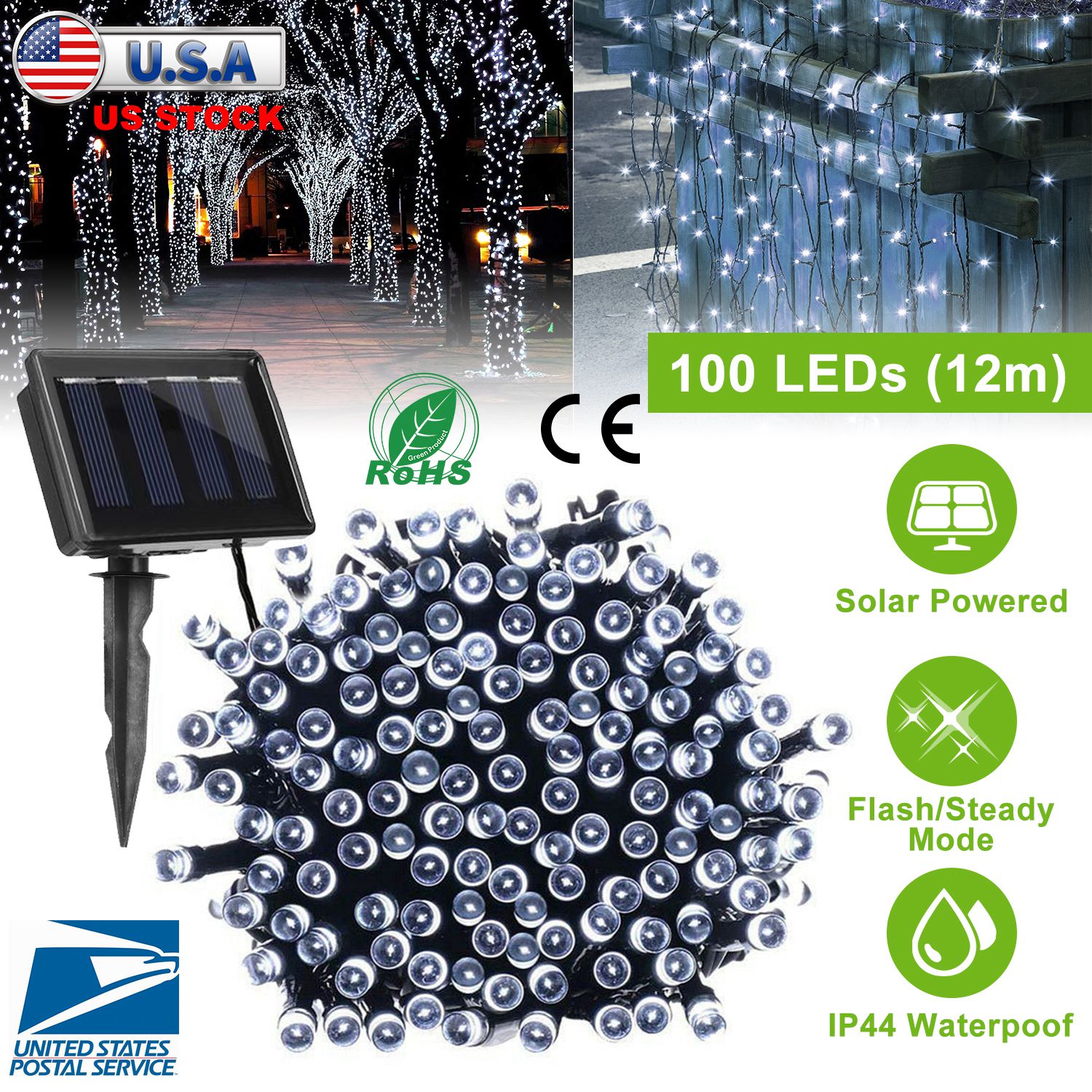 12M 100 LEDs Solar String Fairy Lights Outdoor String Lamps Garden Xmas Decor Lamp