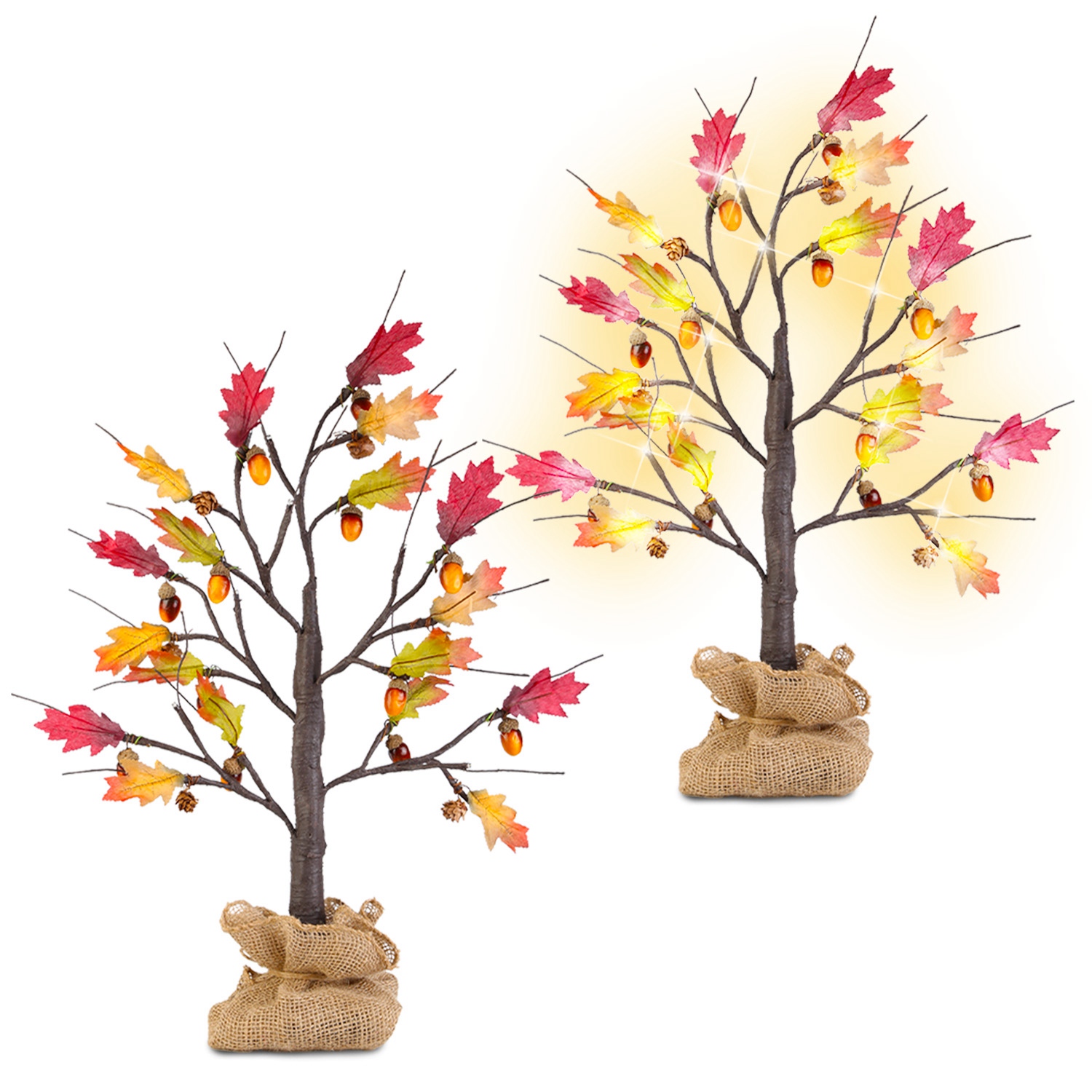 Home > 2Pcs 2FT Artificial Lighted Maple Tree With 24Pcs Warm White LED Beads 6Hrs Timer Battery Powered Artificial Fall Tree Tabletop Indoor Outdoor Fall De