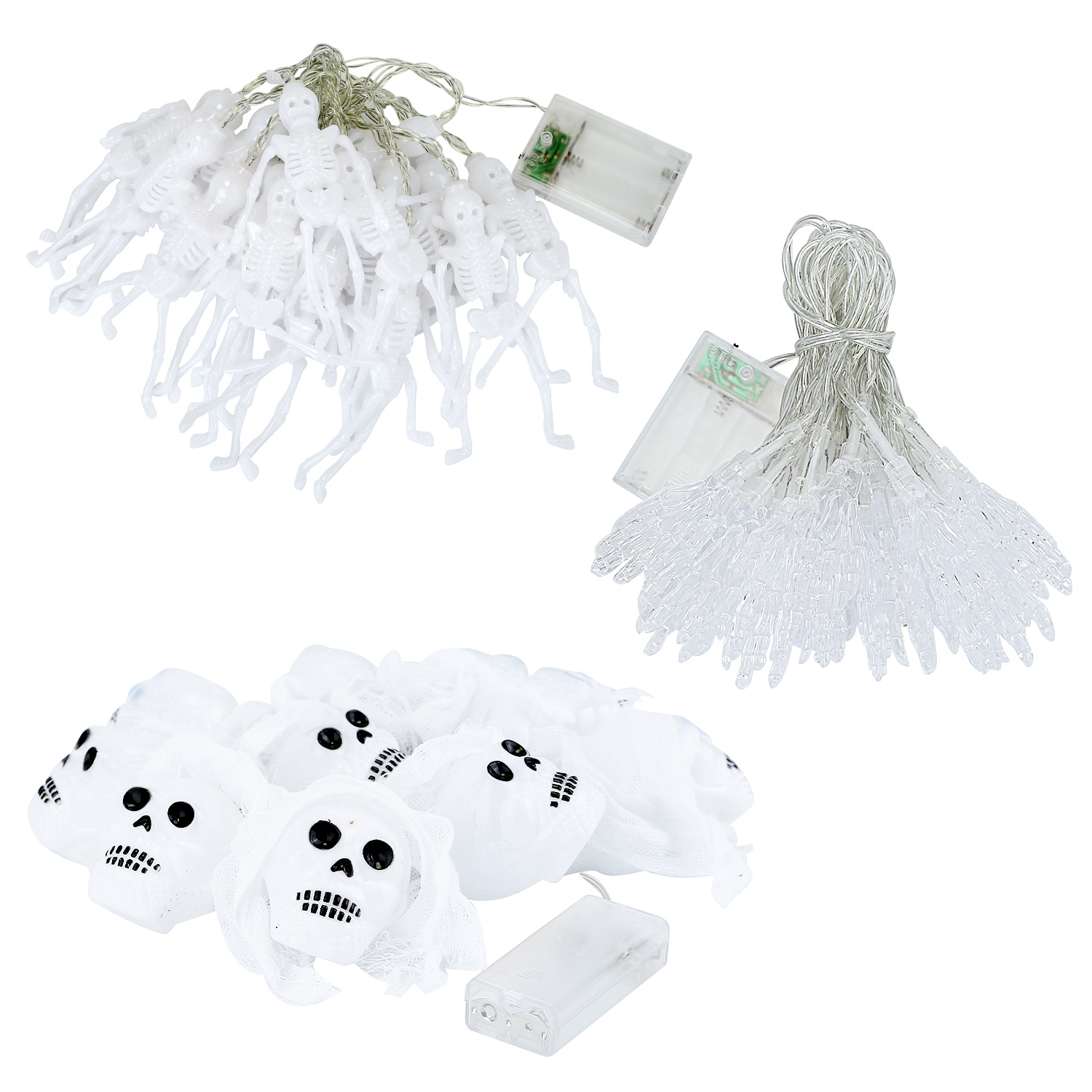 Home > 3Pcs Halloween Light Decorations Total 50 LEDs 24ft Halloween String Lights Colorful 3D Skeleton Ghost String Lights Gauze Skull String Lights Spooky
