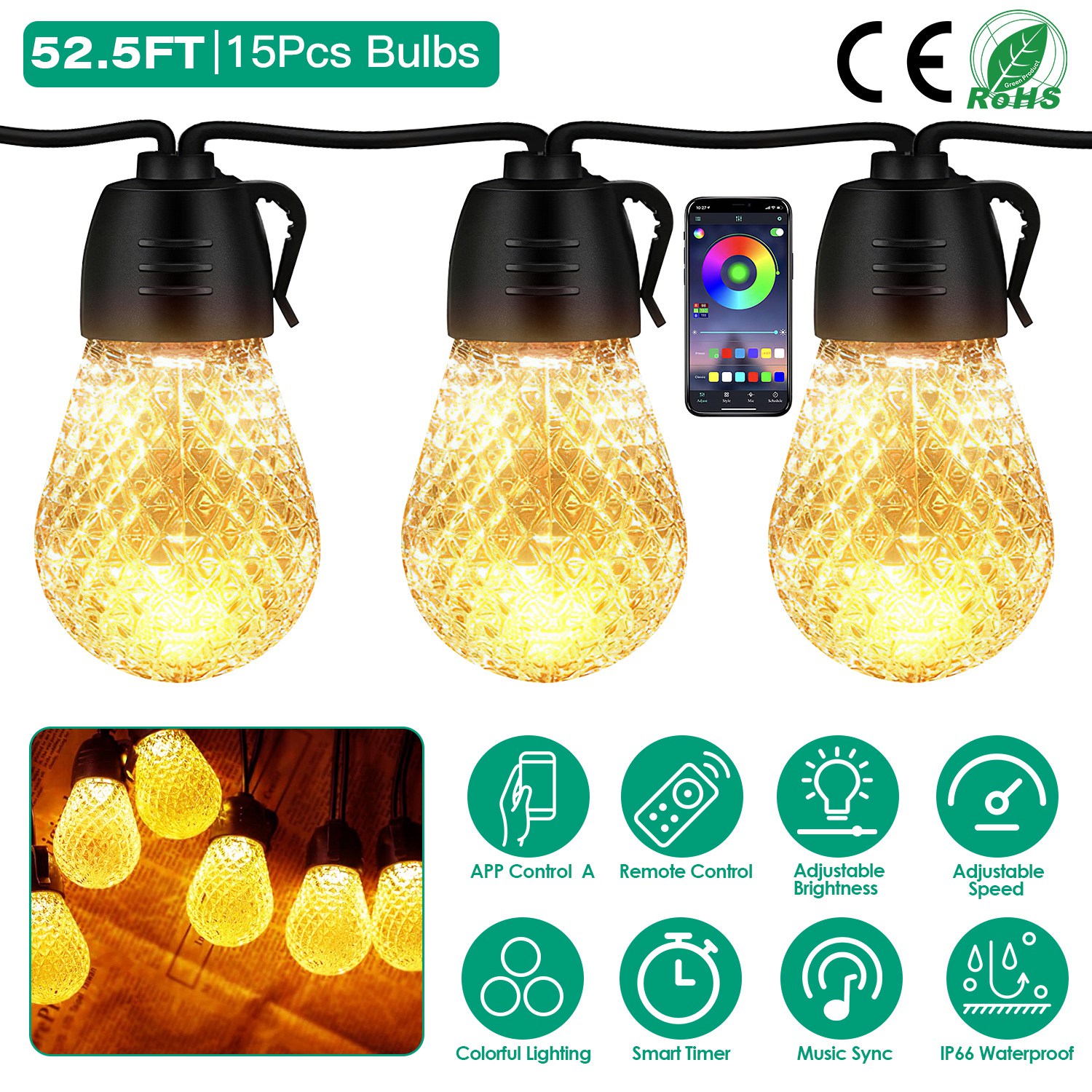 52.5FT Colorful Outdoor String Lights Smart RGB LED Patio Lights IP66 Waterproof Dimmable Hanging Light Bulbs with APP/ Remote Control 15 Bulbs 52.5FT Colorful Outdoor String Lights Smart RGB LED Patio Lights IP66 Waterproof Dimmable Hanging Light Bulbs with APP/ Remote Control 15 Bulbs 52.5FT Colorful Outdoor String Lights Smart RGB LED Patio Lights IP66 Waterproof Dimmable Hanging Light Bulbs with APP/ Remote Control 15 Bulbs 52.5FT Colorful Outdoor String Lights Smart RGB LED Patio Lights IP66 Waterproof Dimmable Hanging Light Bulbs with APP/ Remote Control 15 Bulbs 52.5FT Colorful Outdoor String Lights Smart RGB LED Patio Lights IP66 Waterproof Dimmable Hanging Light Bulbs with APP/ Remote Control 15 Bulbs