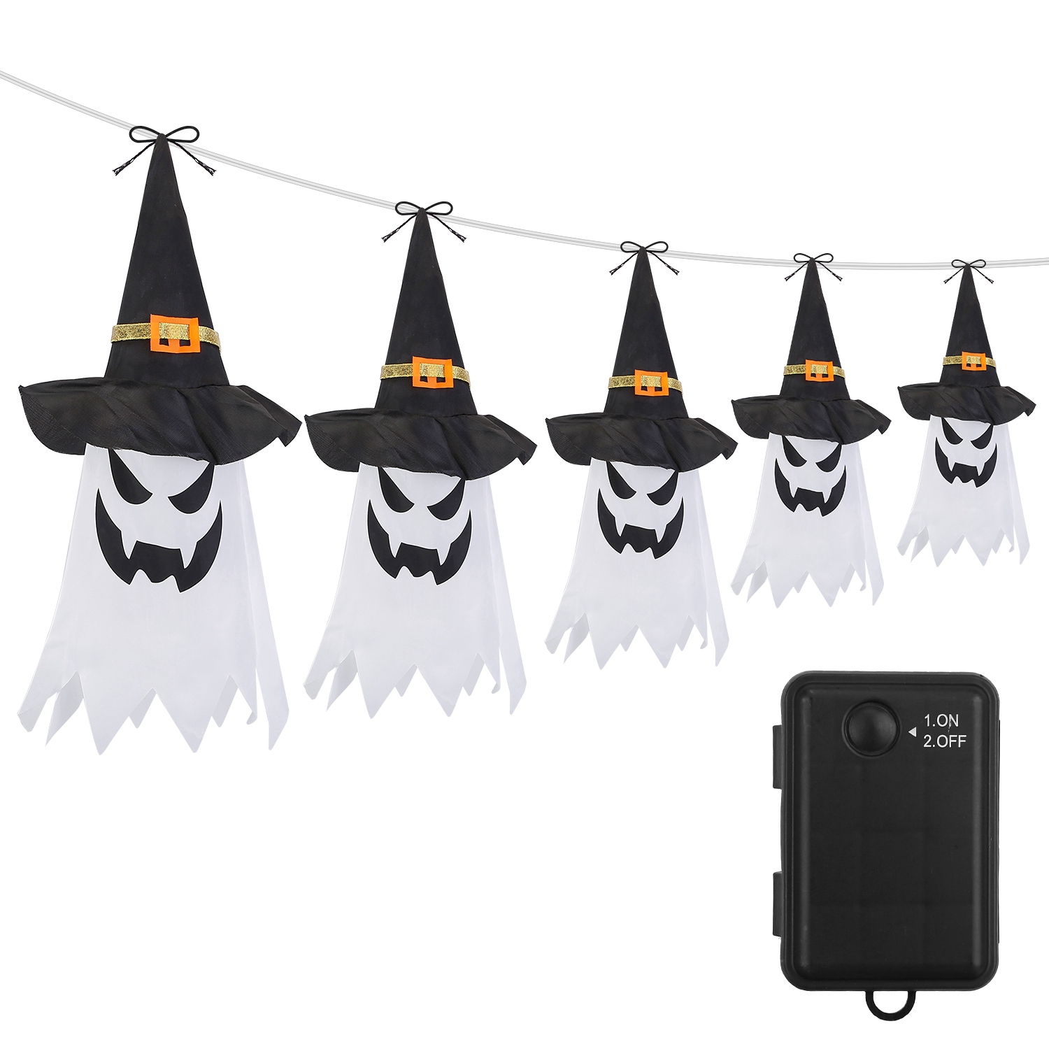 Halloween Ghost Witch Hat Hanging Light Lantern 11.6ft Outdoor String Decorative Light Patio Yard Garden Indoor Light