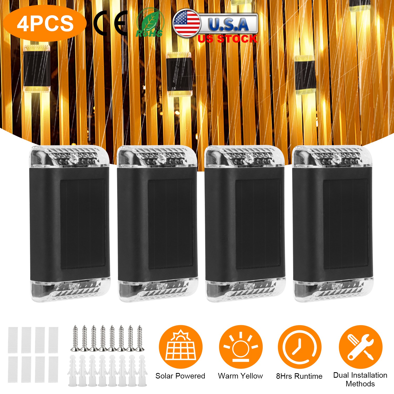 4Pack Solar Powered Wall Sconce Light IP55 Waterproof Rechargeable Optical Sensor Lamp Warm Yellow Lighting Lamp for Outdoor Fence Path Deck Patio