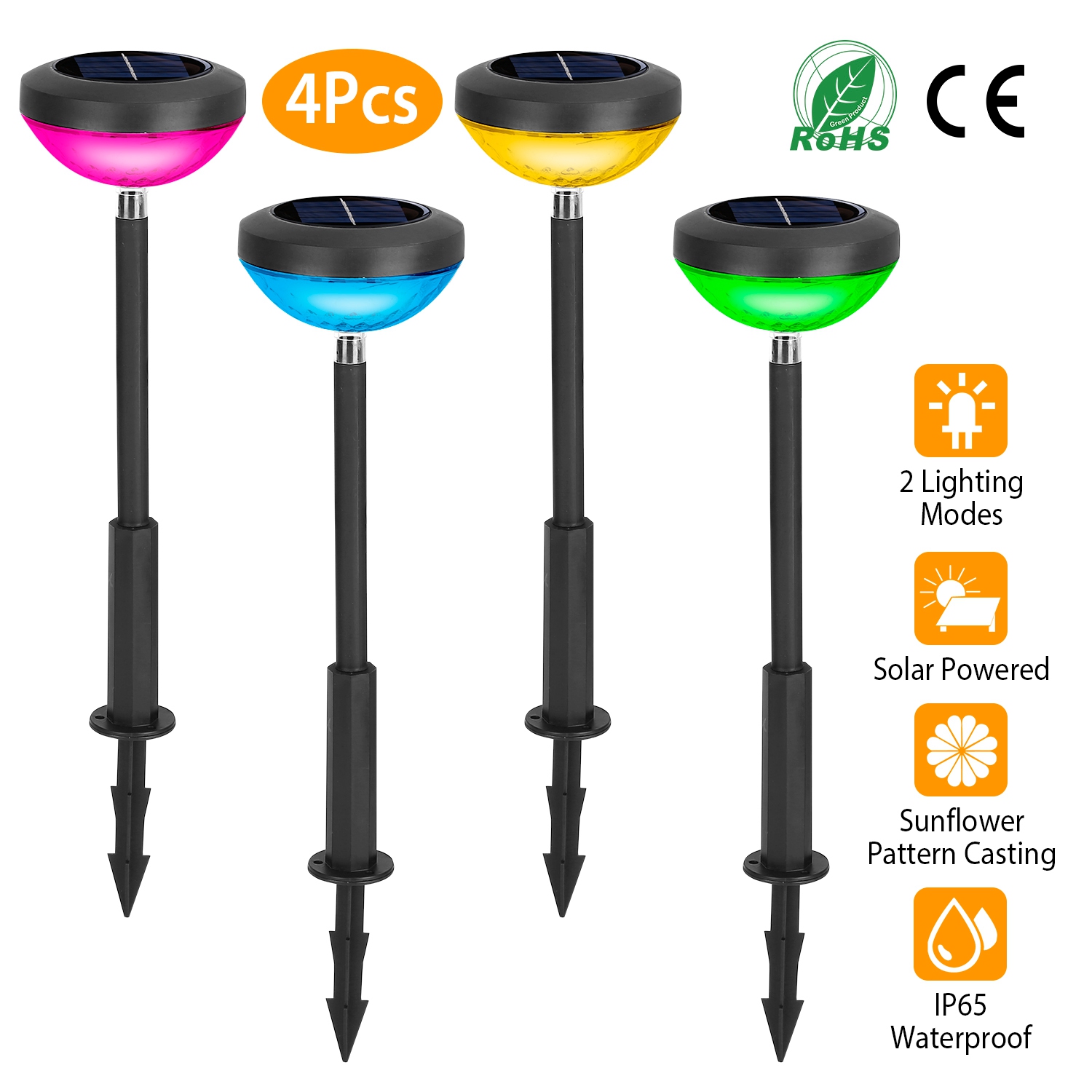 4Packs Solar Pathway Light Color Changing Garden Light Landscape Stake Ornamental Light for Yard Patio Lawn